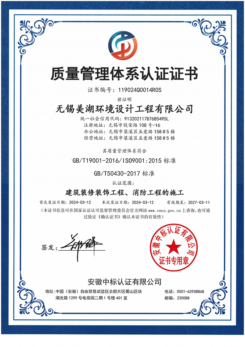 质量管理体系认证证书