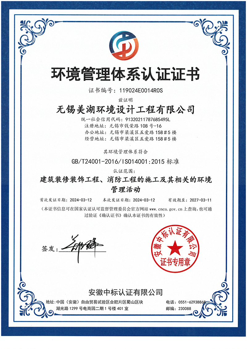 环境管理体系认证证书